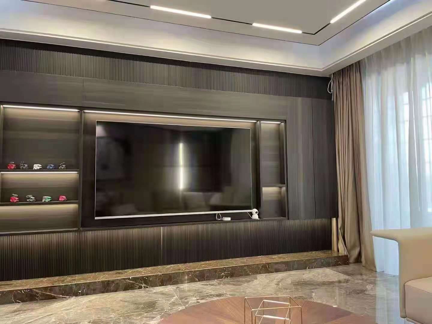 客厅背景柜,深色效果配灯光