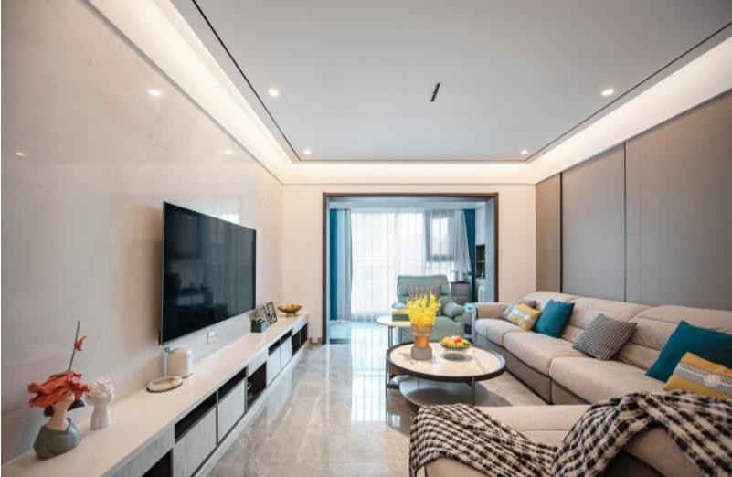 客厅装了吊顶射灯,柔和的灯光让整个客厅亮堂堂,温馨