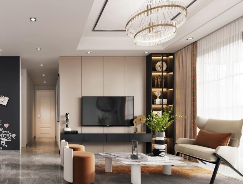 本案面积115平米,4口居家,夫妻两人;两个小朋友,业主比较追求生活的品质,不喜欢传统的厨房,在空闲的时候比较喜欢看书,所以要一个书房。在整理了业主的意见之后,决定了现代轻奢的风格,以米白色为基地,辅以深咖、木色等色系点亮空间,佐以玫瑰金收边点坠,整体空间贴近奢华且具现代感。