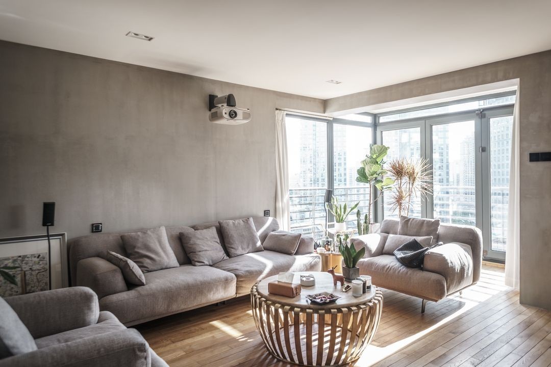 业主喜欢养一些绿植,所以为他在阳台上打造了一个绿植角。整体吊装的重型折叠门相比传统的窗户更加的简洁,更多的光线也因此透进来。当推开折叠门站在那里就可以真实的感受室外的空气和都市风景。