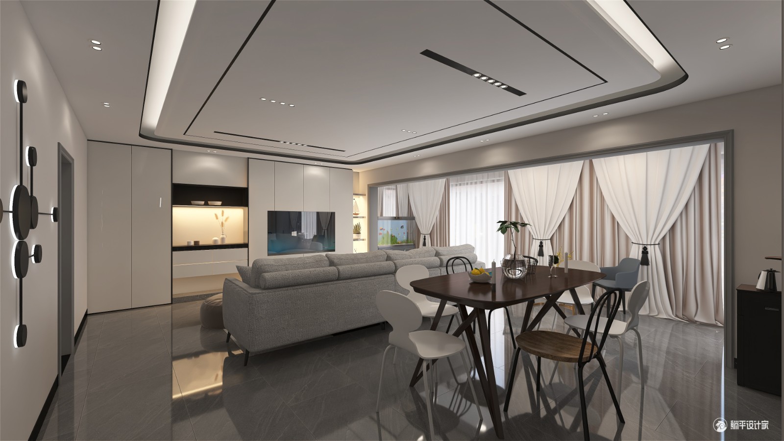 和常规户型有点不一样,沙发背景墙要穿过餐厅才到。