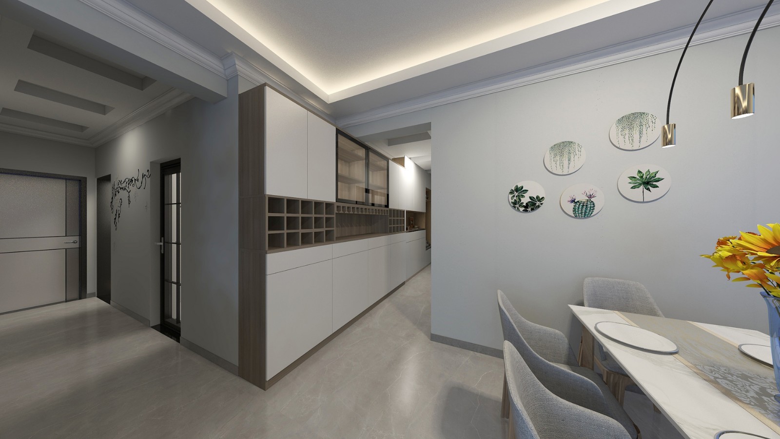 进门过道较长,设计了正面柜子
