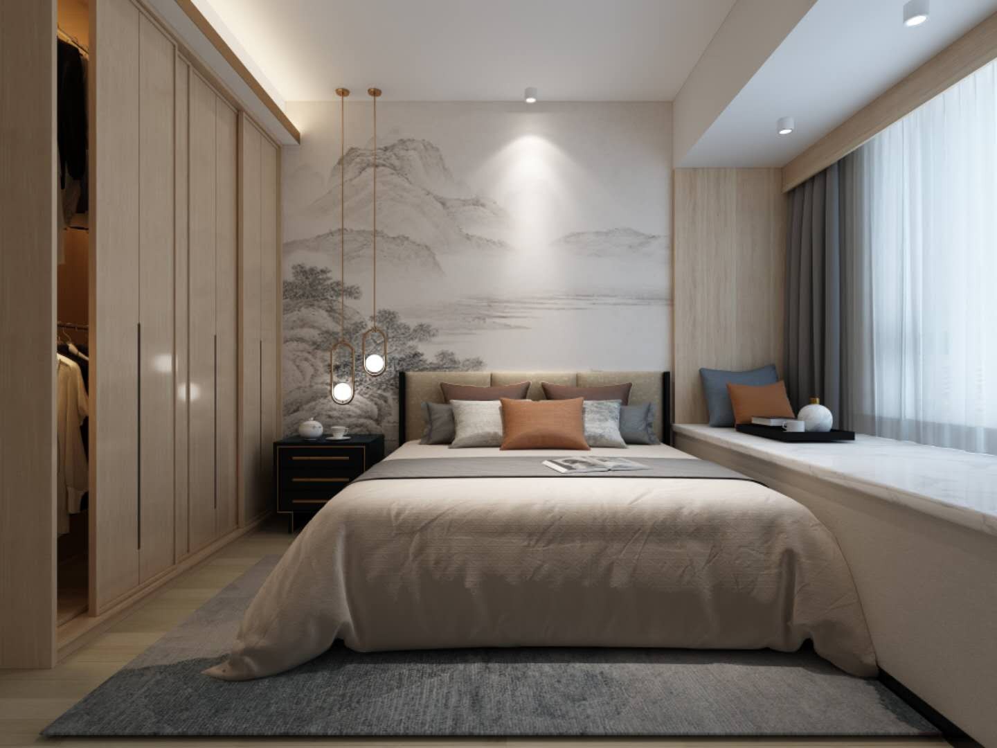 大儿子的房间,更多是简洁和便于收纳的设计,居住者需求1.8米的大床,我们在后期采购的过程中也建议了一些更加多公共能的家具。