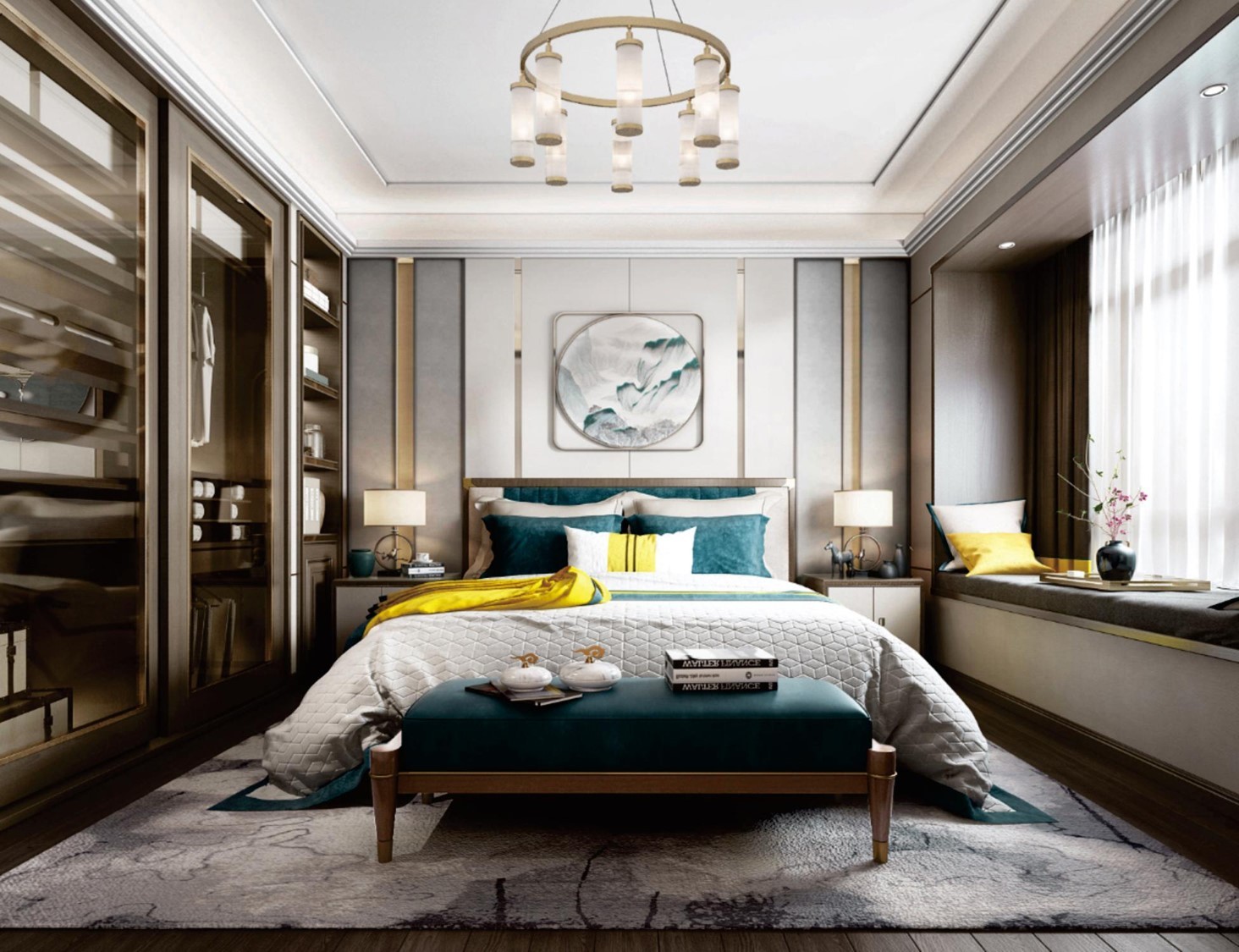 主卧新中式风格展示的淋漓尽致,将东方美学贯彻到方方面面,让卧室精致而不繁琐,简单而不苍白
