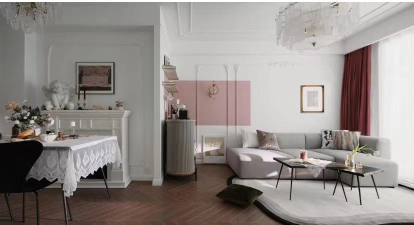 沙发背景墙的细腻线条融入了精致的雕花,瞬间提升了空间的立体感