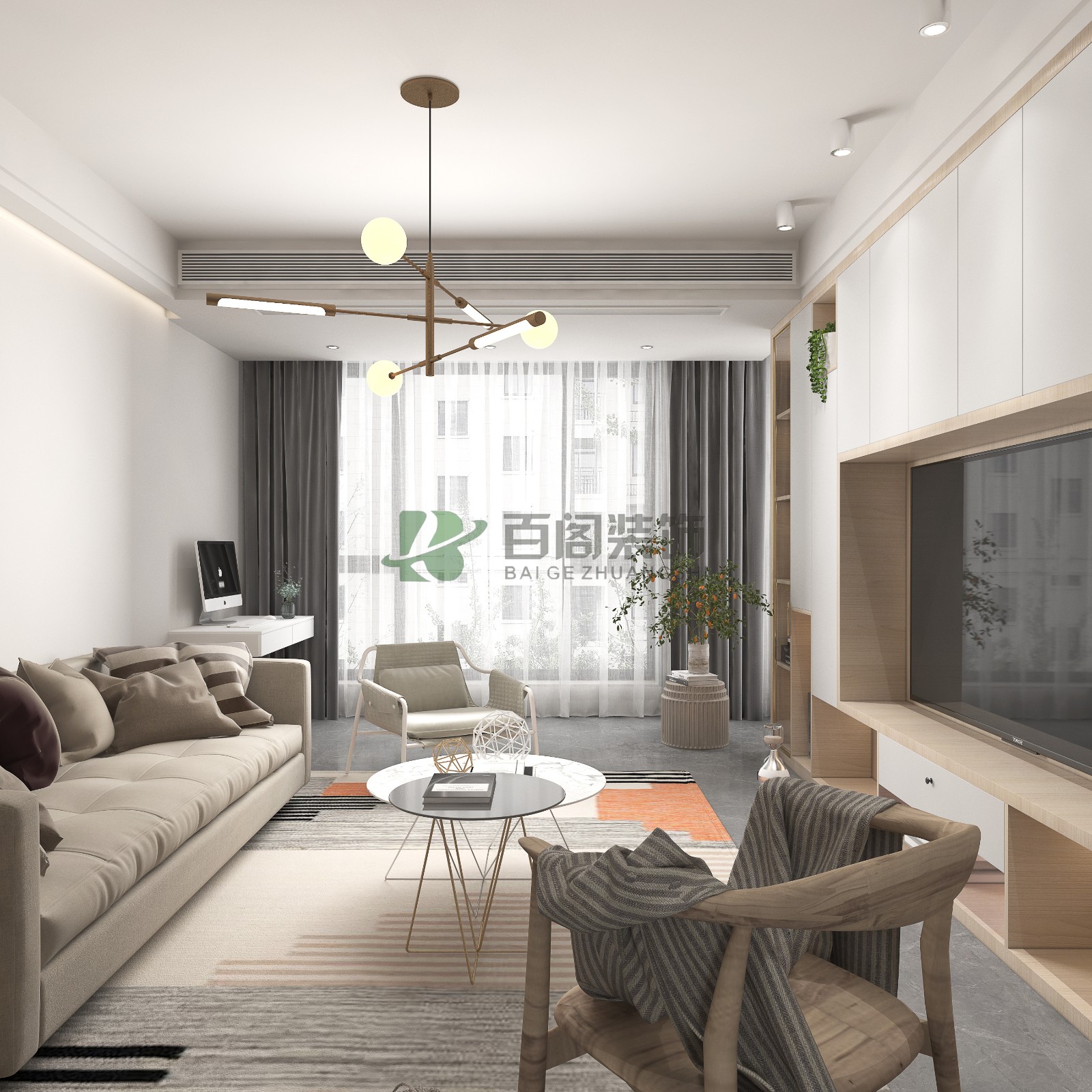 沉稳的木色家具搭配内敛而柔软的浅色沙发