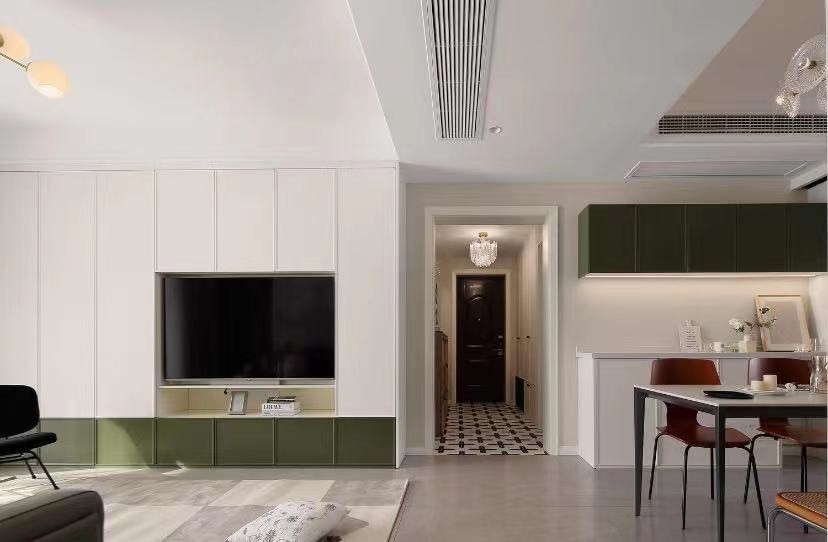 客餐厅之间通过玄关过道江两者自然的分开,色调保持统一,整体清爽而优雅