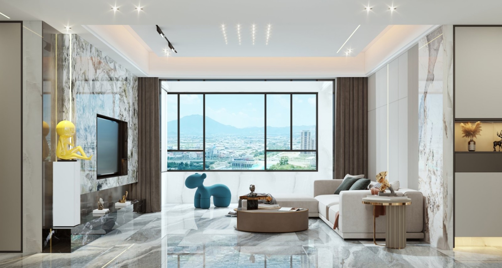 大理石的铺设将这个世界分化成了两个世界,间接的把功能区给确定下来了。