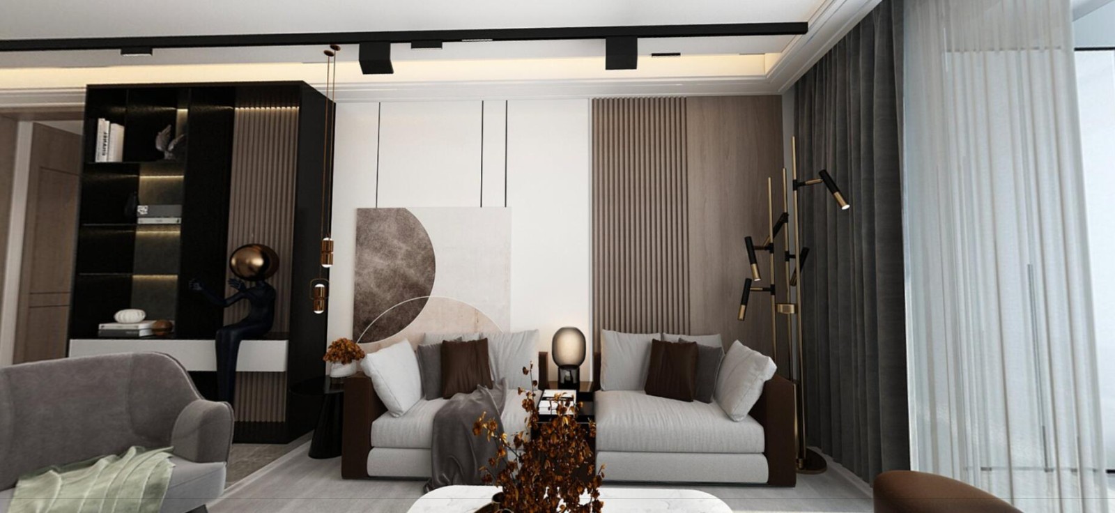 客厅纳入了阳台的设计,结合顶面无主灯的设计,简洁开阔,大面积的落地窗,将阳光和窗外的风景尽收眼底。