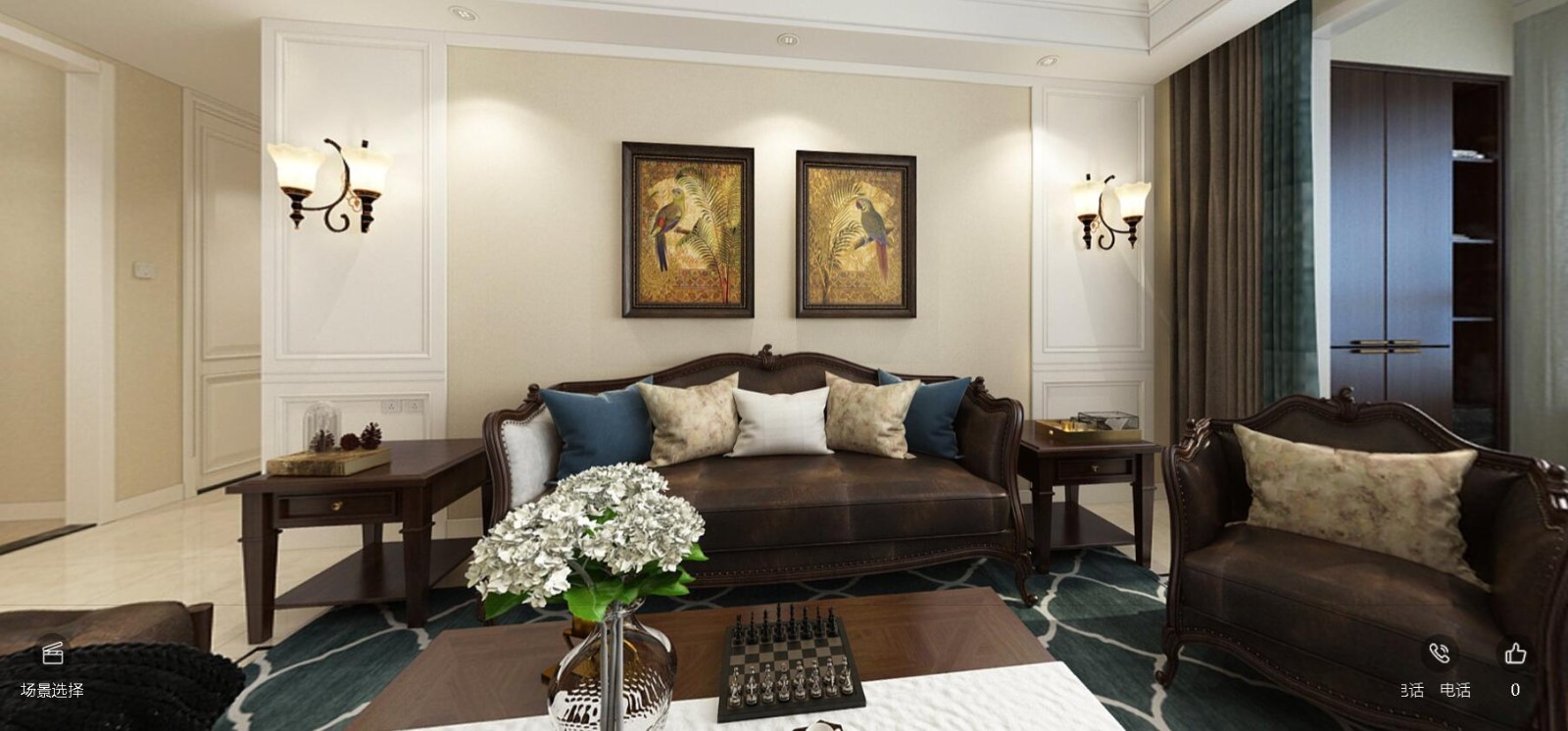 美式对材料的色彩、质感有较高要求。本案家具、护墙、衣柜、木门都是大面积的胡桃木色,室内各种丰富的木线变化、优雅明快的软装配饰,展现主人热爱生活和丰富格调。