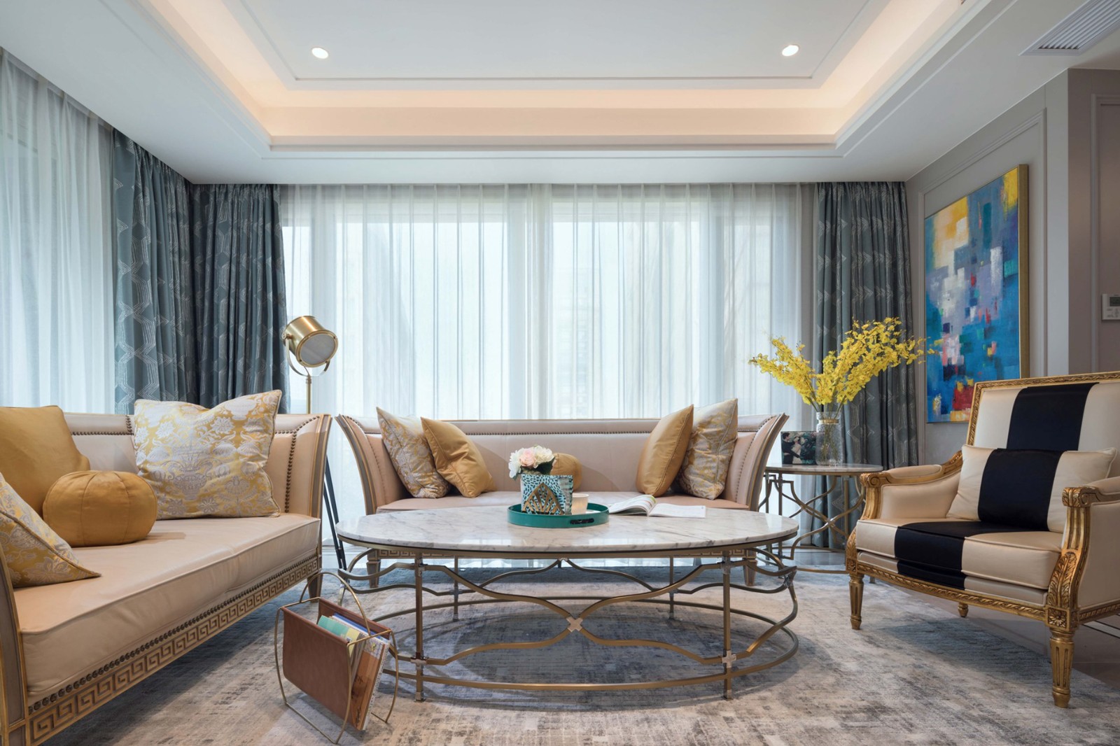 客厅采用简洁明了的语言描述生活的质感,错落有致的陈设细节与富有创造力的抽象挂画,增添空间的艺术感。