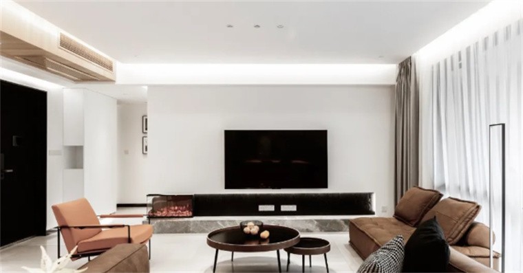 留白墙顶面配合点光源设计,整体简约素雅