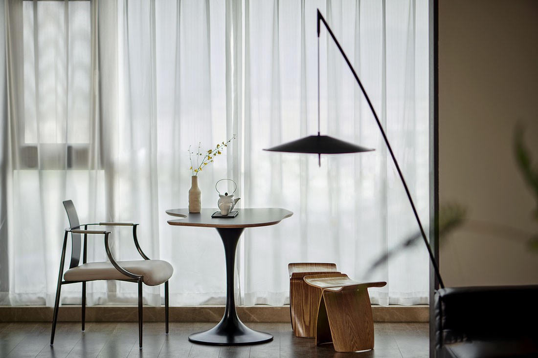 整个空间以木饰面为主要材料,暖咖色水泥质地为空间基调,温润质朴的深浅木制搭配。