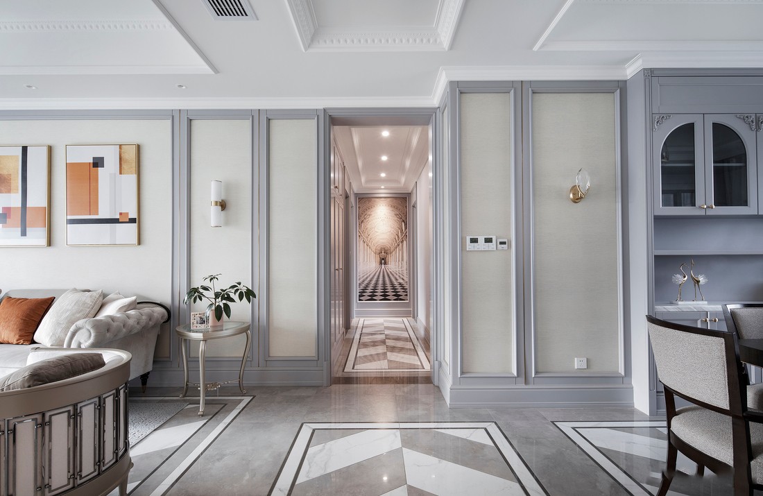美式 代表着自由与贵气 低调奢华 进取与传统 汲取美式中足够温情的部分,摈弃过于厚重怀旧的形体表现。 映入眼帘的是既复古又优雅的空间,让人眼前一亮。