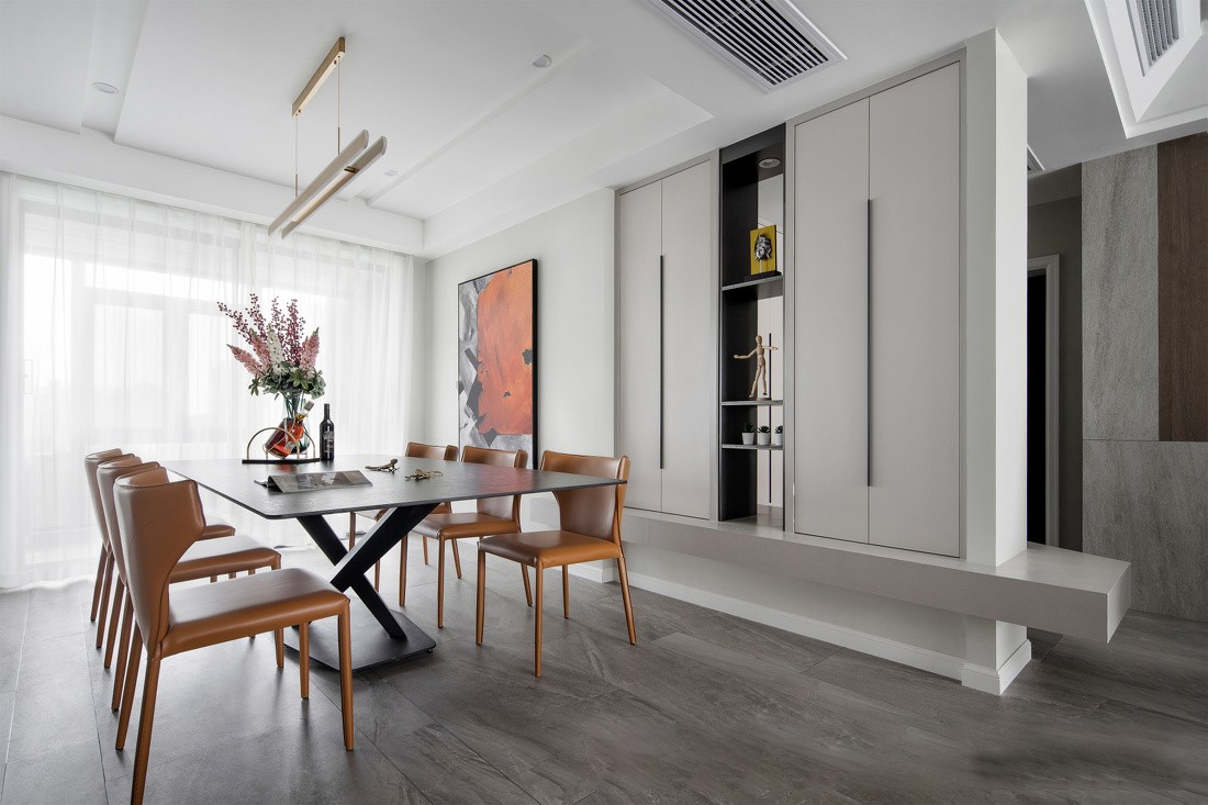 灰阶调铺陈空间基地, 以撞色技巧活跃空间层次。