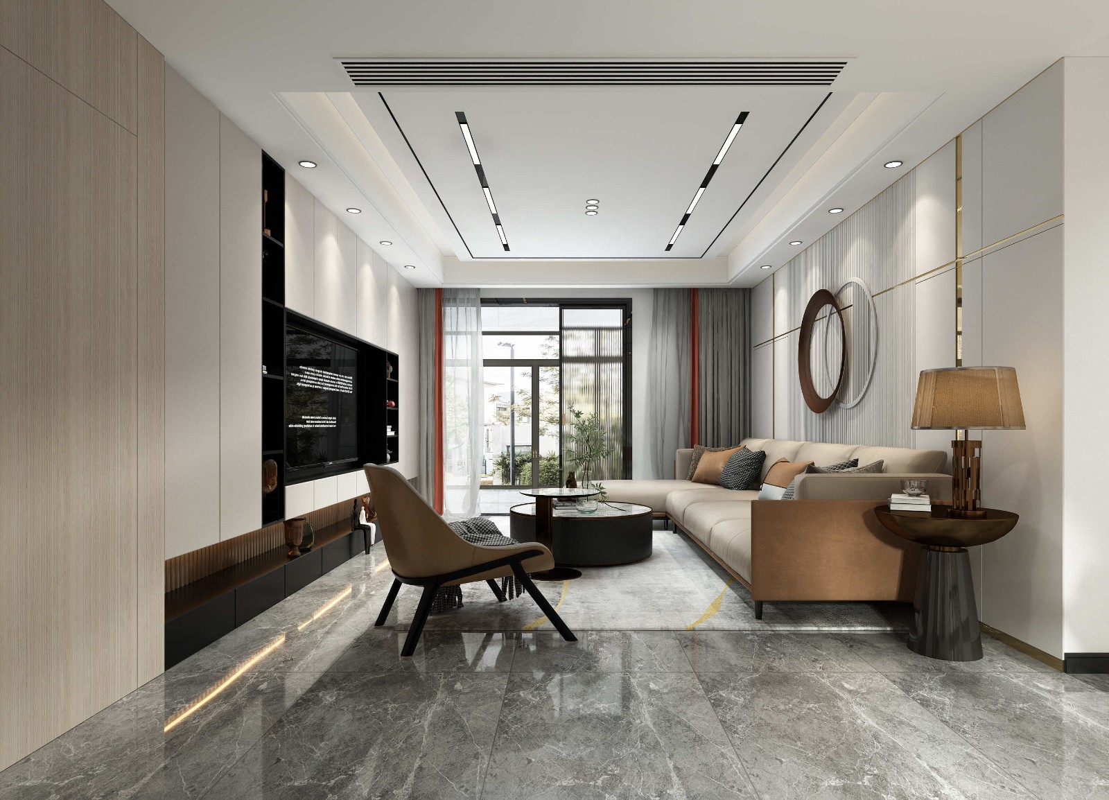 客厅:无主灯的设计让顶面更加干净简洁,拉高视觉纵深感,让整个空间更加连贯。空间主旋律上选用了灰色调,用更加理性而睿智的态度演绎高品质且简单舒适的生活态度。