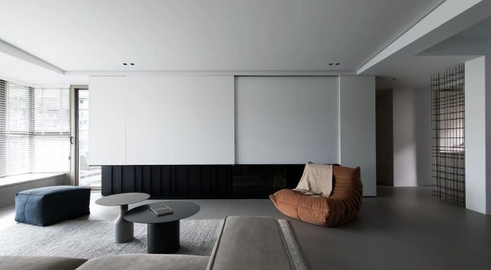 空间的储物做到了大块面的隐形,利落平整的简约气质,减少了视线的干扰,打造出更为纯净的“回归”型场域。