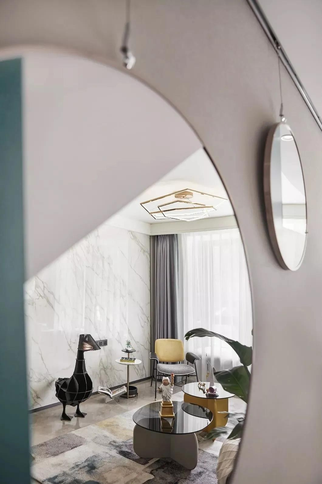 客厅整体空间以现代风的硬装基础,布置上色彩丰富的艺术感软装家具,带来的空间感充满着文艺与优雅的气质。
