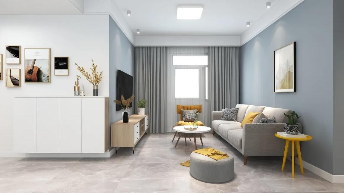 空间虽然比较小,玄关与客厅空间相互借鉴。