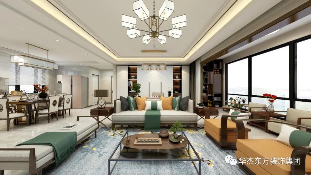 这是一套160㎡新中式风格案例,在整屋色彩搭配上运用了现代亮色软装来“中和”传统深色家具,方正的饰条框与复古灯饰、摆件遥相呼应,契合水墨禅韵的中式理念。
