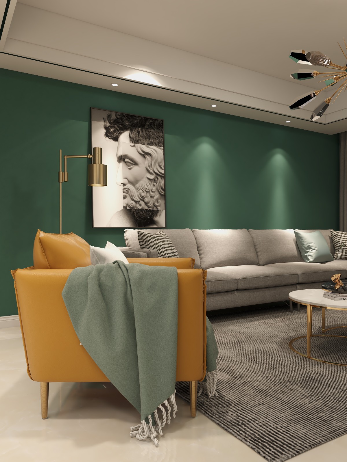 所以我们用墨绿+柠檬黄两种颜色去搭配,通过色彩的变化,让整个家更具个性化。