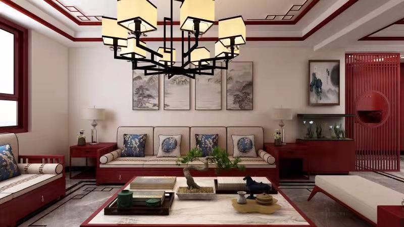 中式客厅,红橡色,主色调。