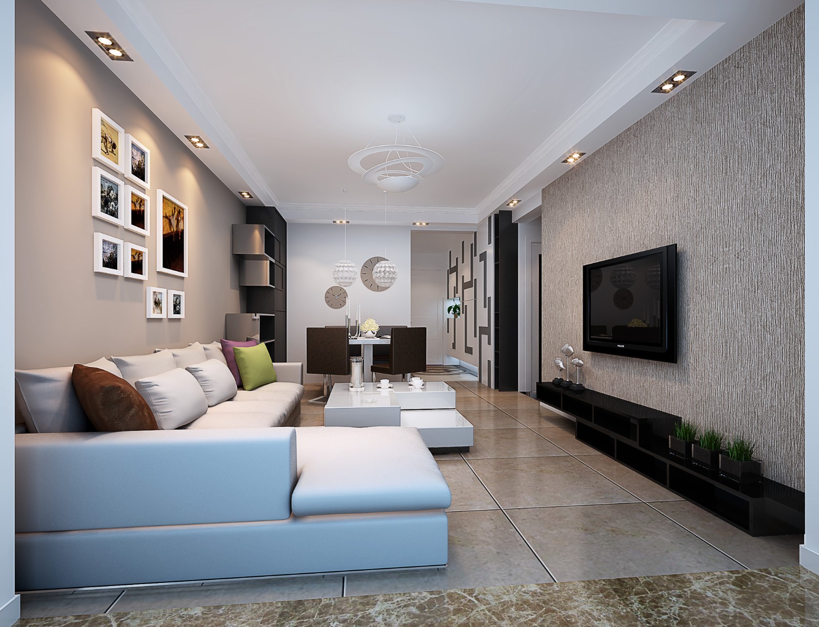 客厅空间在与餐厅融合下得到了 极大的空间视觉效果!