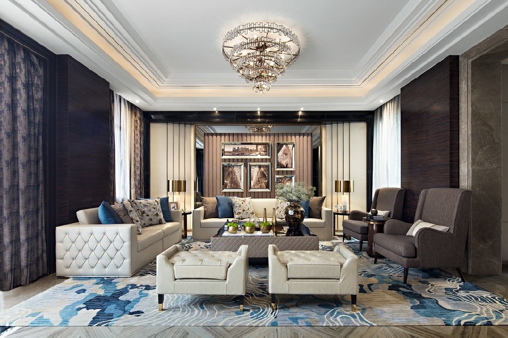 设计人文浓郁的古典家具,搭配现代感灯具与家饰
