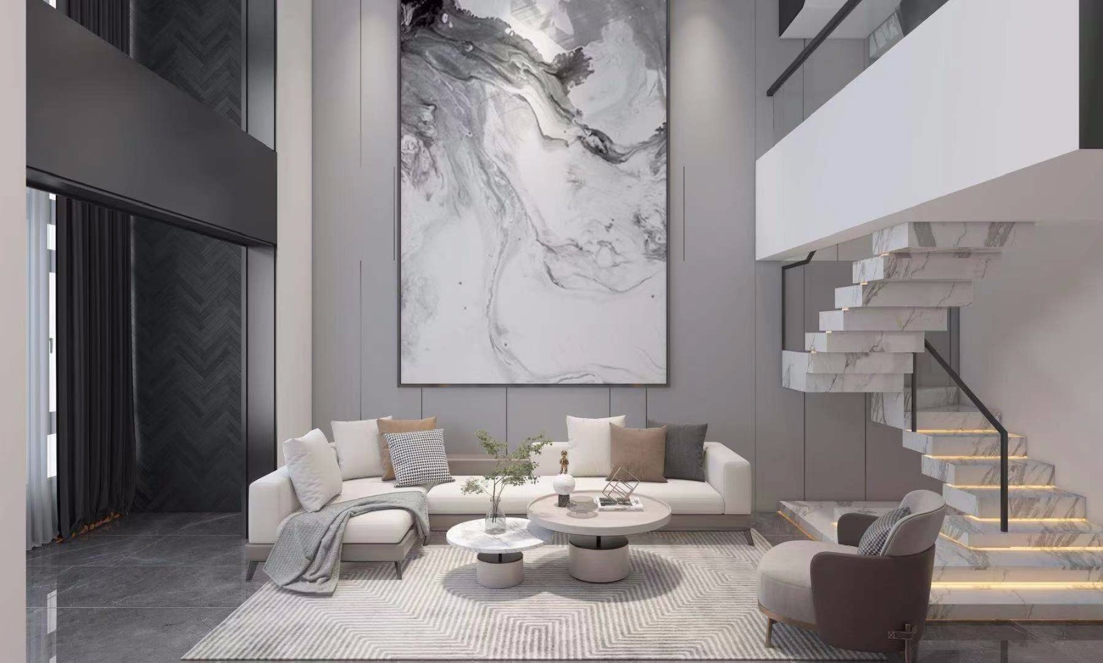 最终成型的方案,以玻璃砖,大理石为主,功能区域合理模糊化,整体色调协调明亮,给与空间充分的想象。