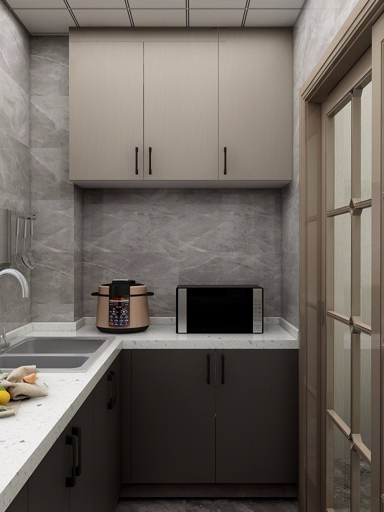 没有繁琐的饰品点缀,有的只是空间的塑造。色彩方面,以灰色为主,用绿色和少量黑色做点缀,干净安逸。