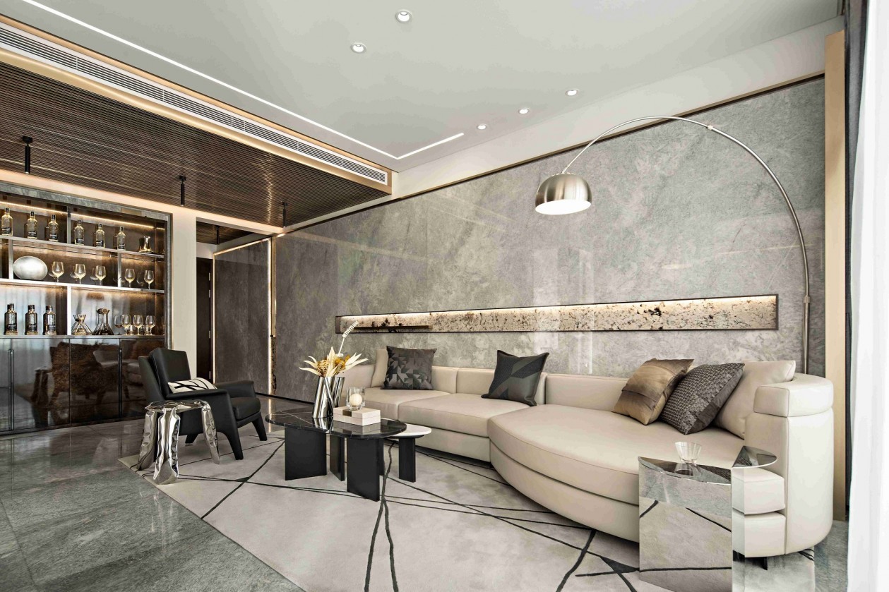 自玄关步入客厅,整体设计简洁而明亮,客厅作为主要的社交场所,通过对艺术光影的捕捉与自然氛围的营造,建构、肌理、空气、味道、光线等元素的灵活运用,打造出一处建筑与自然的和谐空间。