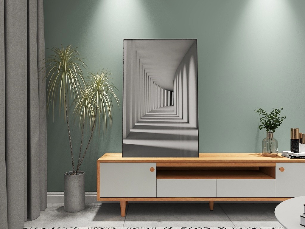 本户型两室一厅,客厅的初步方案相对来说较为简约、偏向黑白灰,比较符合两人的审美需求。可后续沟通时,屋主表示不希望孩子居住的环境颜色过于单一,客厅颜色我们便设计的更为丰富,跳色让整个空间更具有暖意。