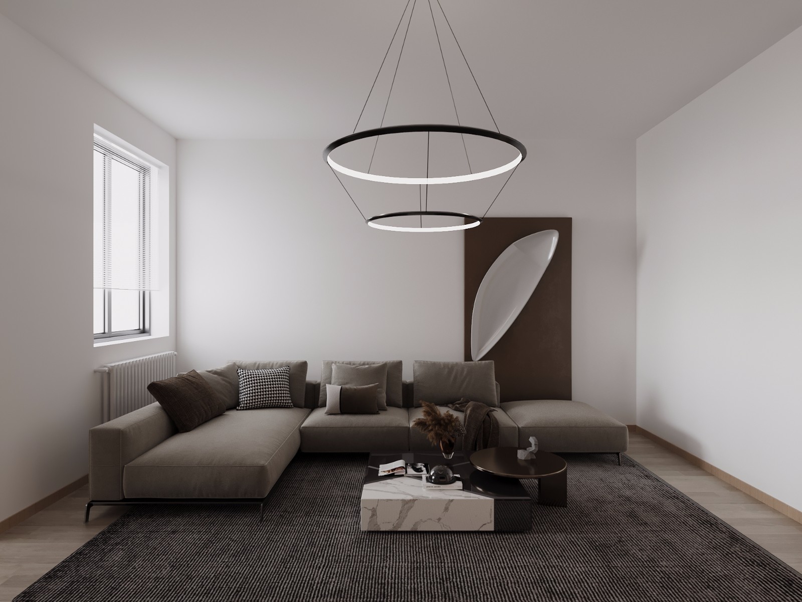 客厅:客厅L型的布艺沙发增加舒适度,采用大面积留白的手法,业主后期可以添加自己喜欢的挂画、装饰物品