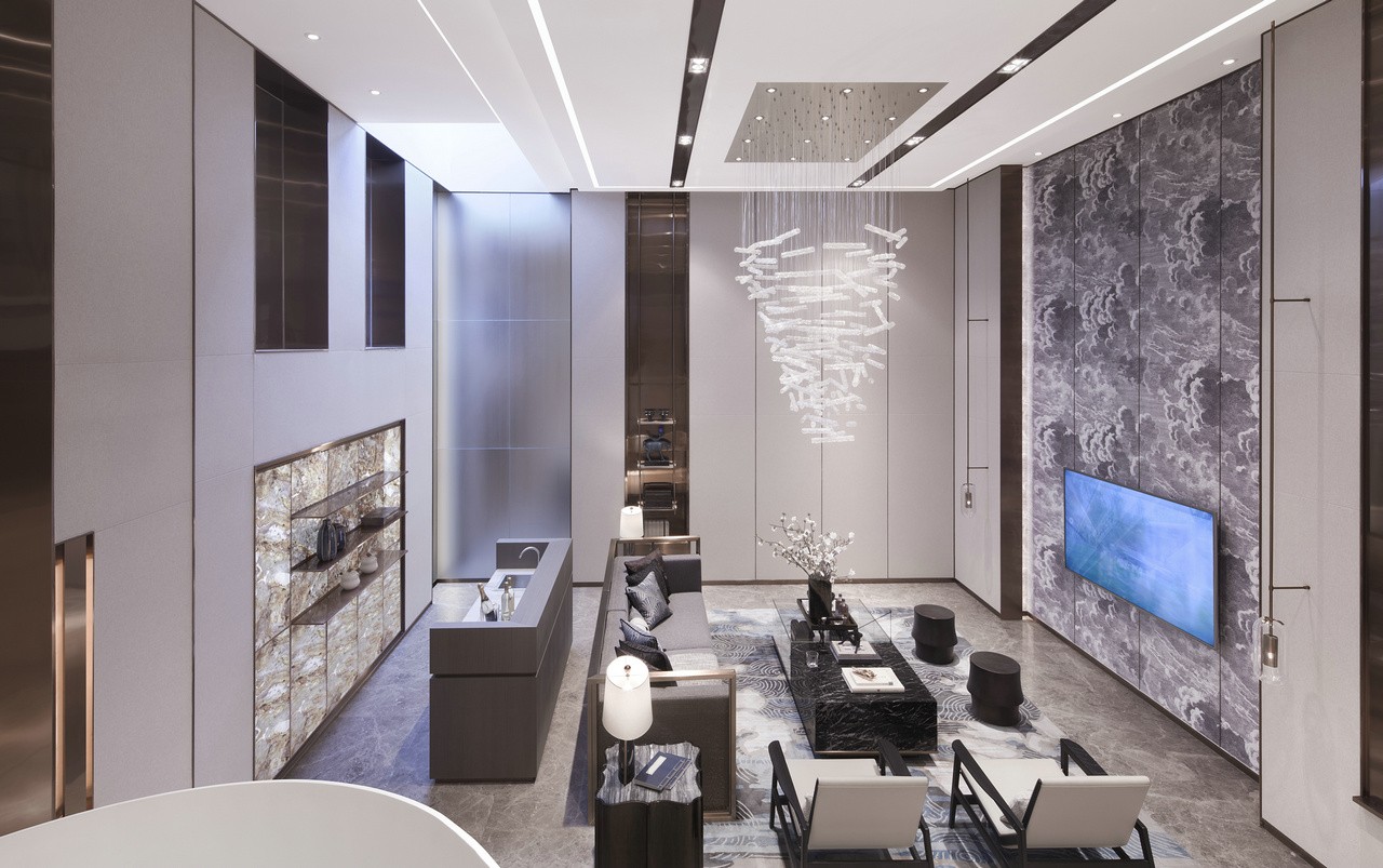新中式别墅,中式元素与现代材质的巧妙兼柔。客厅