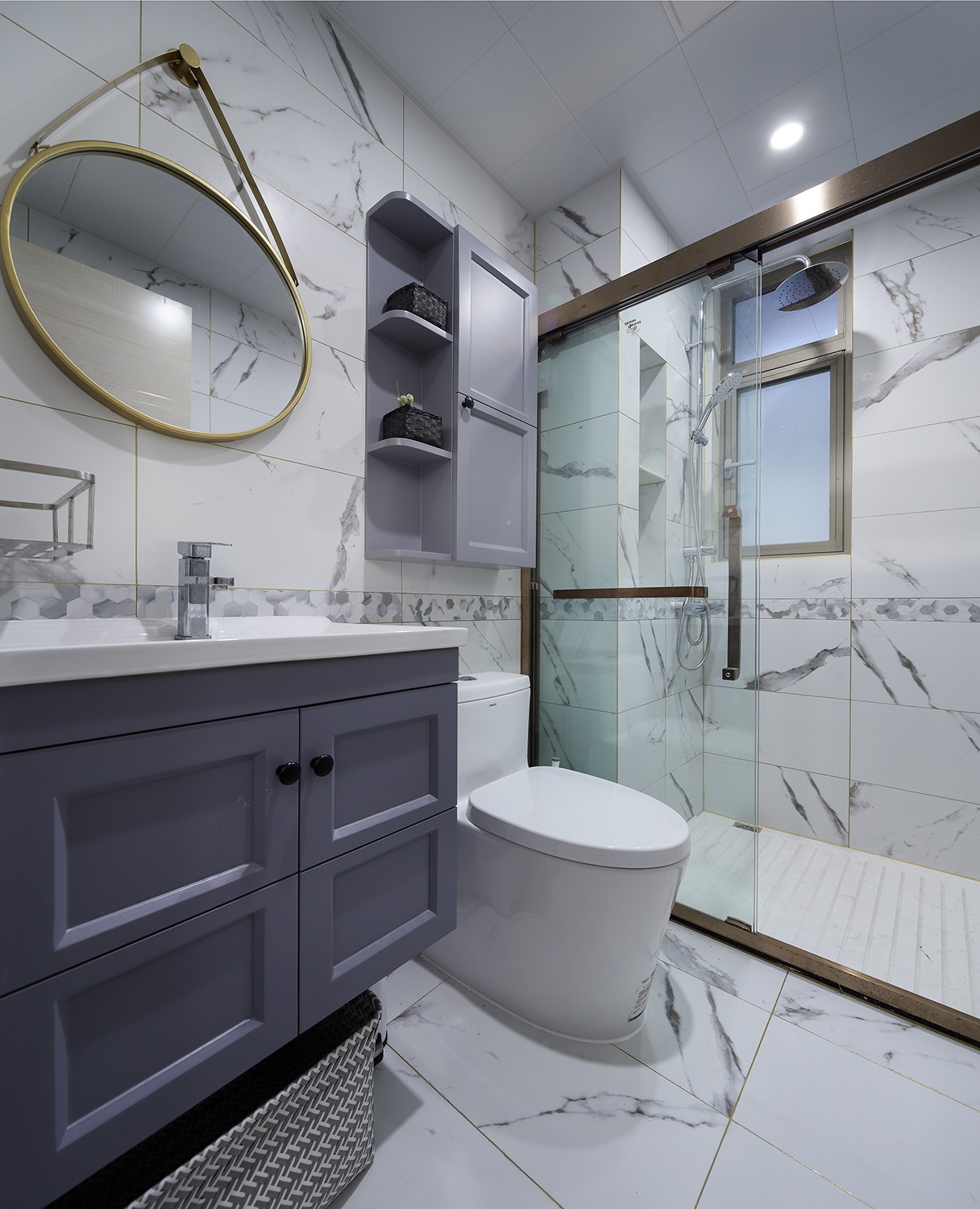 卫生间的瓷砖选用带有黑色纹路的白砖,避免了刻意的有序排列,简单明了的组合反而让空间看起来更具***感。