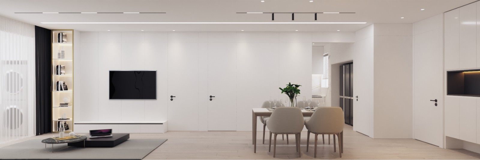 欧洲进口板材+通体拉手餐边柜+窄框玻璃门酒柜。入户两侧鞋柜。进口板材沙发背景墙护墙板。