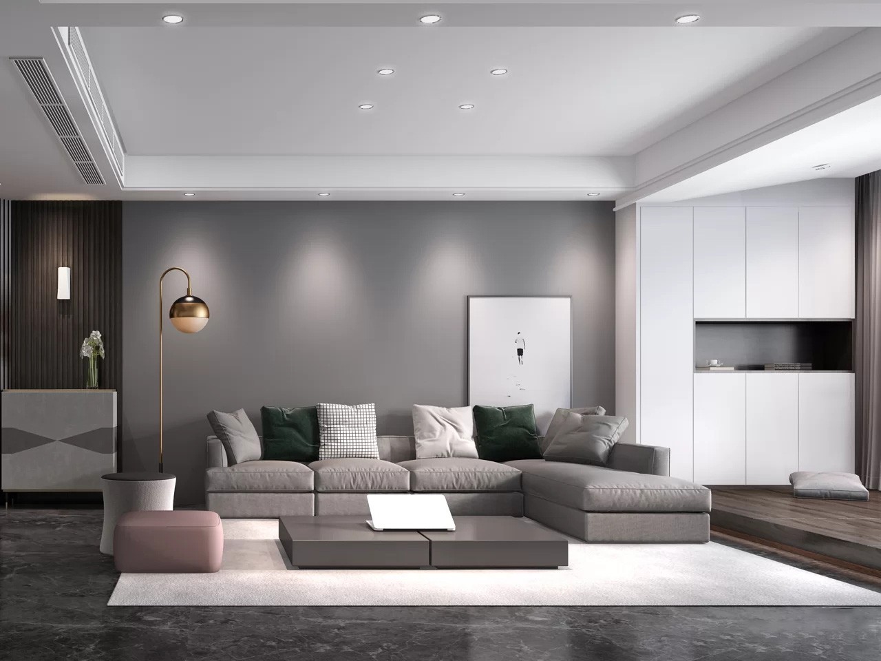 黑白灰的后现代简约风格客厅是当下很受人们欢迎的一种设计搭配,或白或灰的色 调,让客厅显得既沉稳而又不失时尚。白色的墙面、白色的家具和沙发,让客厅看上去格外简洁开阔。无须华丽的装饰,无须贵重的家具,简单的颜色搭配带来的明媚感将整个客厅的拘谨一扫而空。极简的黑与白,塑造优雅的同时又极具现代设计感。黑色可以和无彩色系的白、灰及有彩色系的任何色都能组合搭配,营造出千变万化的不同色彩情调。