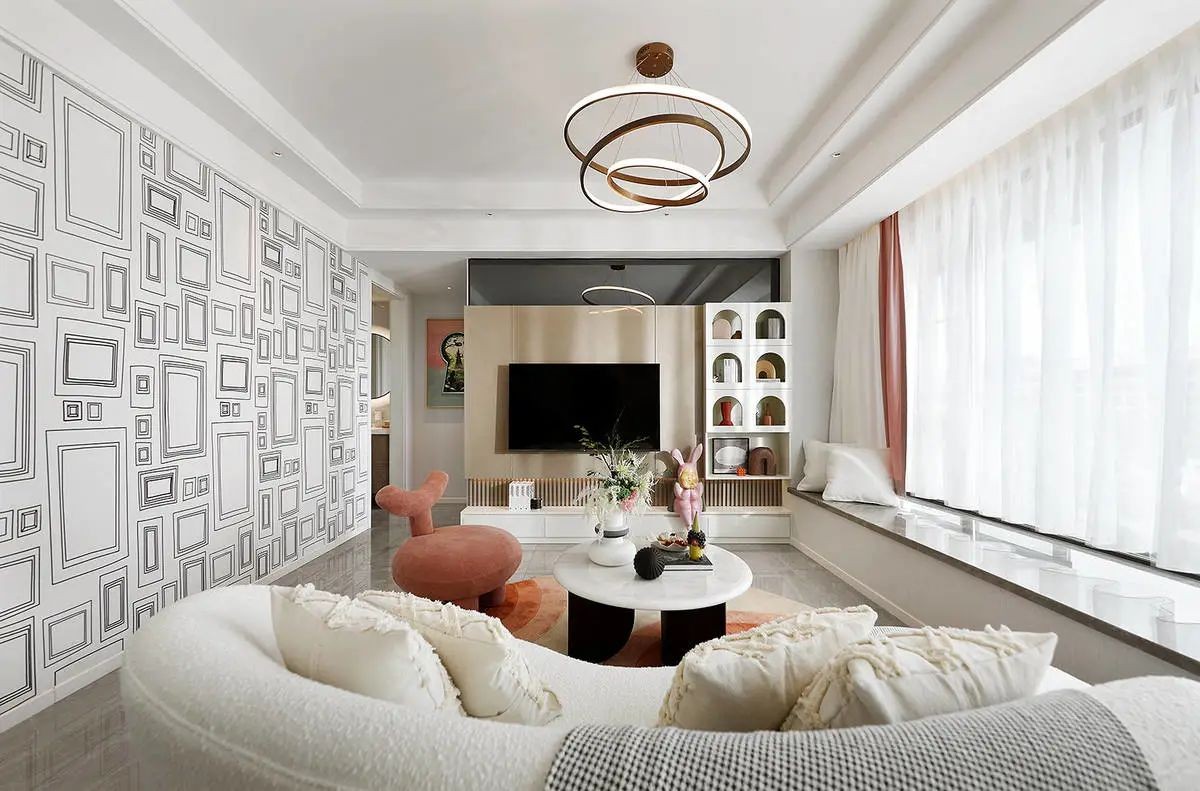 步入空间,整体通透而明亮,墙面、地面以及家具都大面积的运用了灰白色系,客厅形成空间关系的穿插与体块穿插,让空间具有高度的完整度和统一性。
