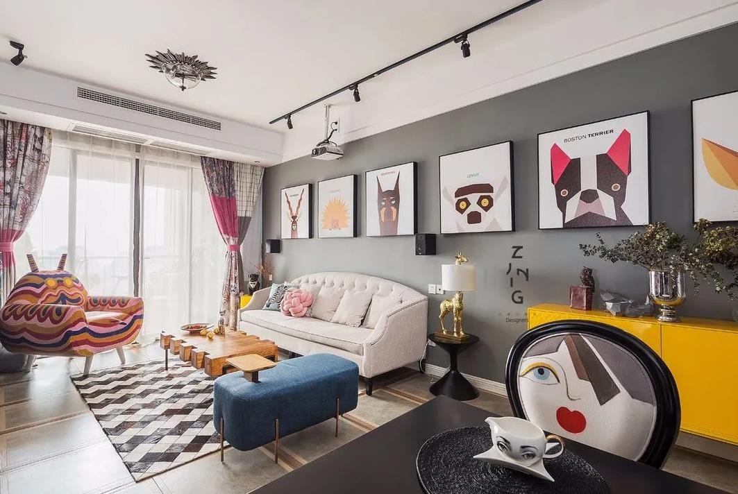 客厅使用纵轴设计,以L型沙发及组合茶几,搭配两侧单椅的围合手法,拉伸整个客厅的体量感,强化入户的***感官,令其更显开阔。个性化定制的沙发,侧边引入功能性柜体,以细节成就家居体验。墙面则采用手工制作的钉子山水艺术画,以此增强空间层次和文化格调。