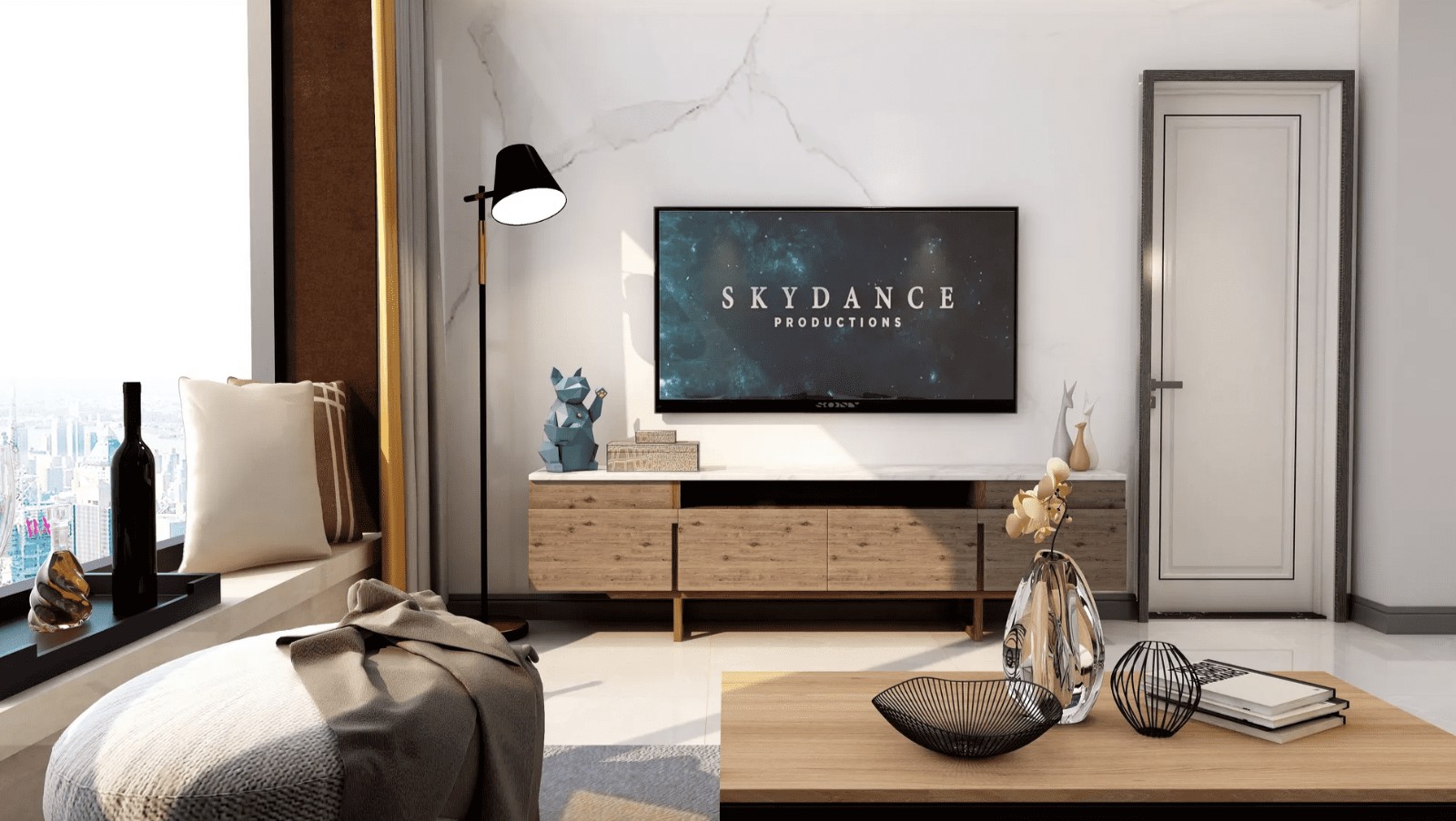 岩板背景墙与木柜的搭配,将温度带进了家,打造出了有格调的气氛