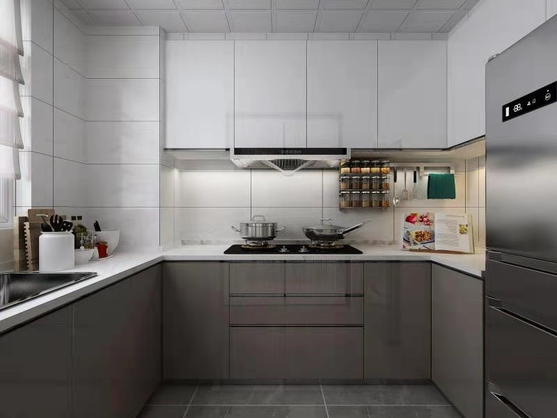 现在风格的厨房,檀木色的门板与宝色的吊柜搭配对比,是如此的高品质。