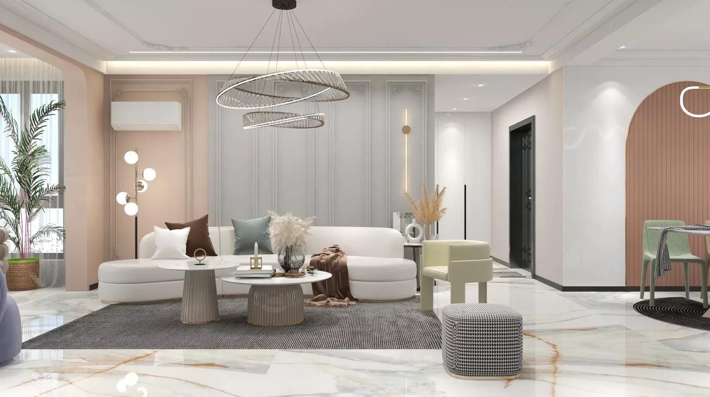 客厅整体以莫兰迪色系为主,是整体空间看起来更加小清新。