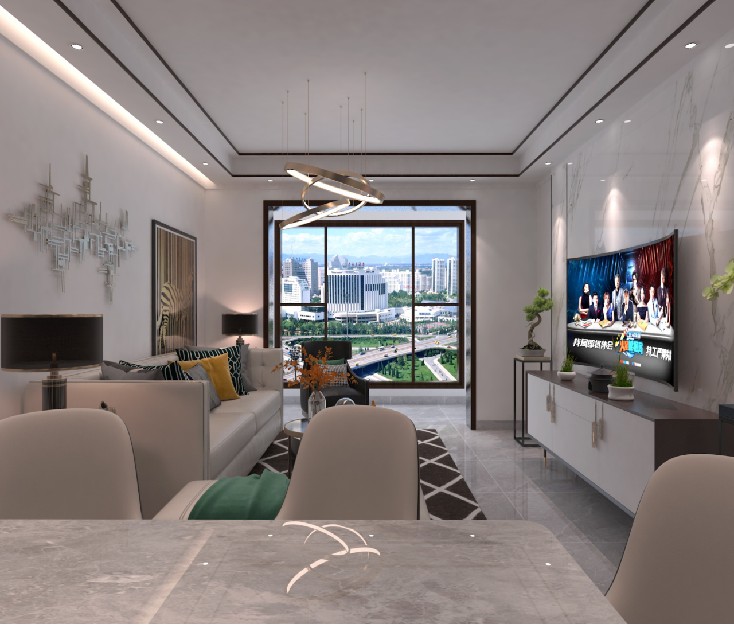 客厅是家装风格品味最直观的体现,新中式的客厅设计更要把奢华和大气展现得淋漓尽致,白色的整体色调搭配灰色的地面是最适合的,可以通过黑色不锈钢线条点缀来凸现精致,地毯或者地垫是新中式轻奢风中不可缺的,在茶几处可以搭配暖色系的拼花地垫,让质感在不经意中展现。客厅的软装上可以选择气质材料,结***色的单椅,变换的格调,在细节上体现韵味。