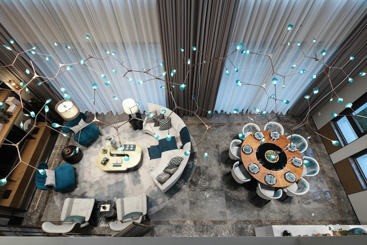 艺术和抽象的软装造型为空间带来极具张力的感觉,现代时尚风格与细腻的艺术气息的植入,使空间特质既满足了现代创新的审美诉求,又有古典的优雅,散发阵阵诗意和浓郁的现代人文气息,于形与意、态与势之间展露出沉稳的贵族风范。