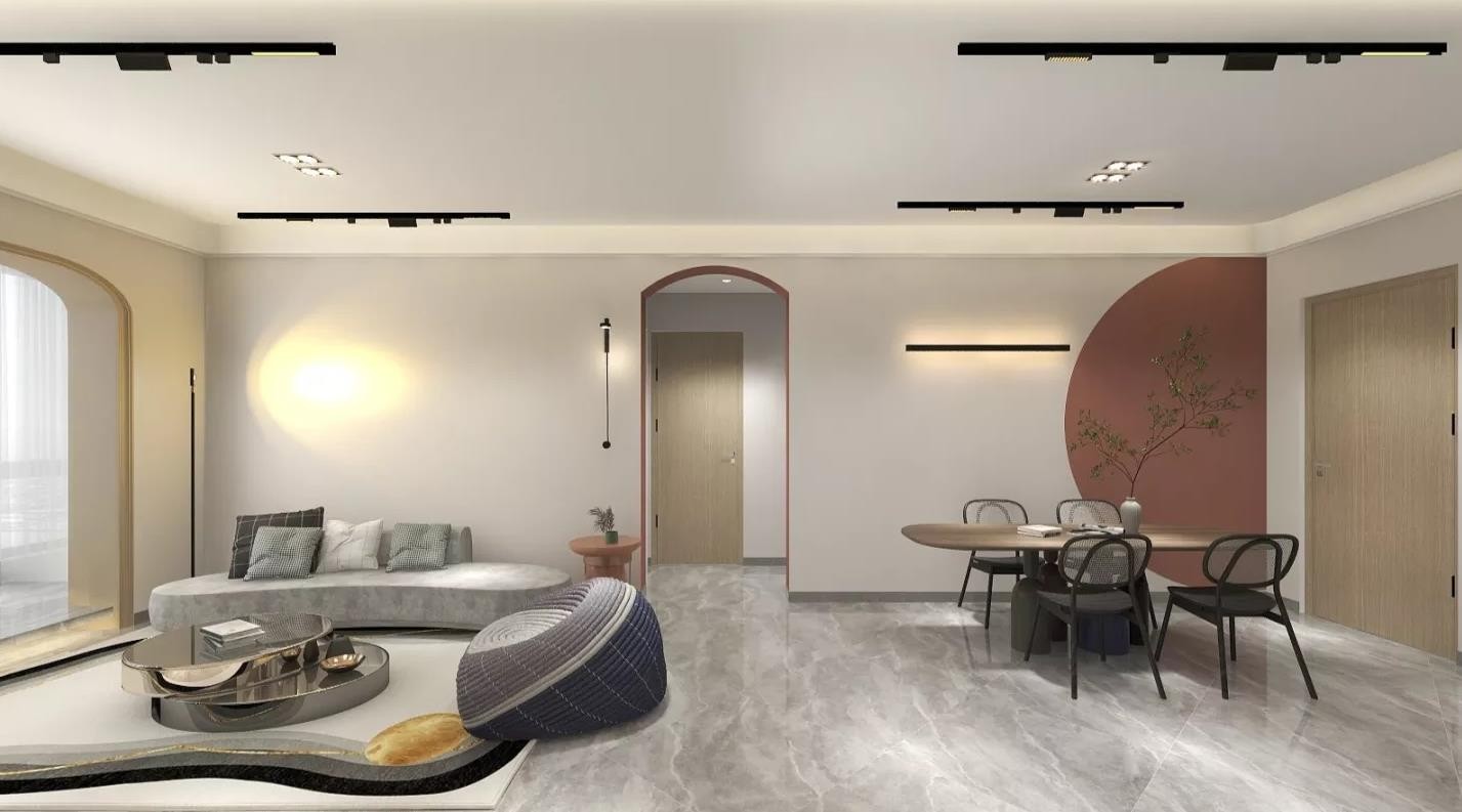 客厅整体以浅色为主,其他颜色为点缀,整体无主灯设计,更加美观,大气。