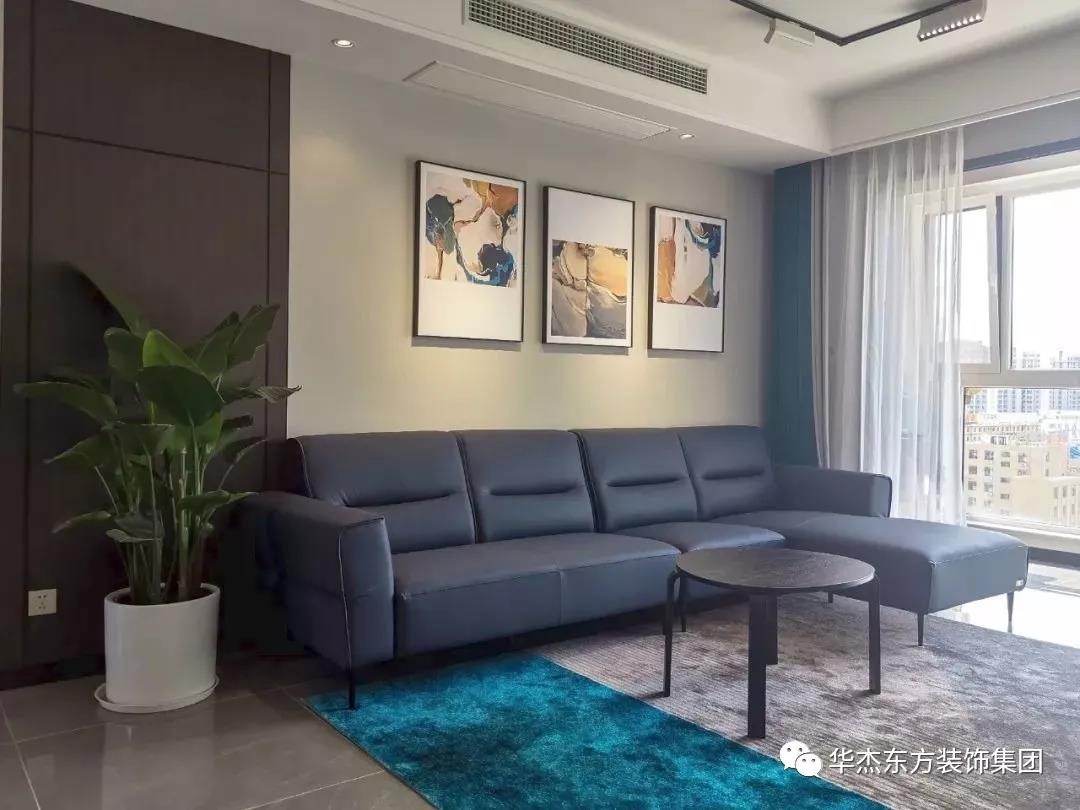 这是一套126㎡现代风格案例,灰白与蓝的配色令人无限回味,整个空间带着一份沁透心脾的舒柔和爽朗,展现着纯净、明亮与简洁的视觉享受。