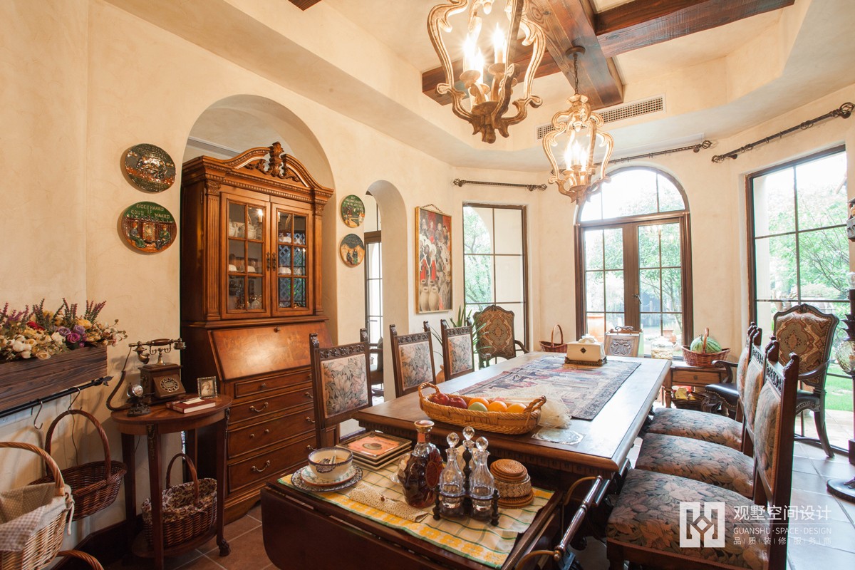 设计师以相对低调的复古欧式作为设计主导,运用精炼的欧式设计元素及硬装、软装的协调搭配,从整体到局部,体现了复古欧式的内敛,又不失气派