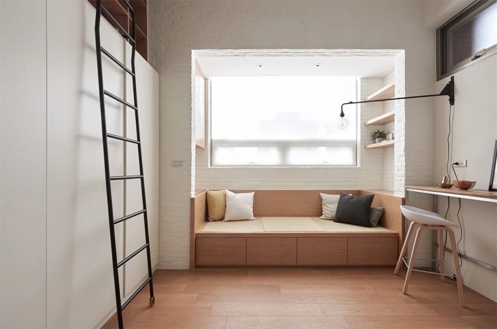 白色与原木色互相搭配,加上采光明亮,看起来也很整洁