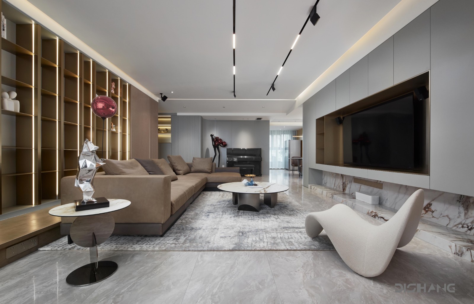 进入室内空间里,正对进门的造型柜体成为***印象,曲线串连起整个空间,展现轻盈美感,并巧妙界定出玄关与餐厅领域。