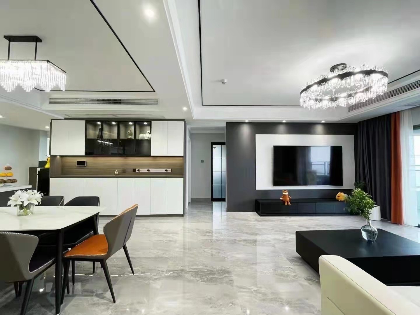 无主灯客厅,设计,岩板装饰,大理石瓷砖